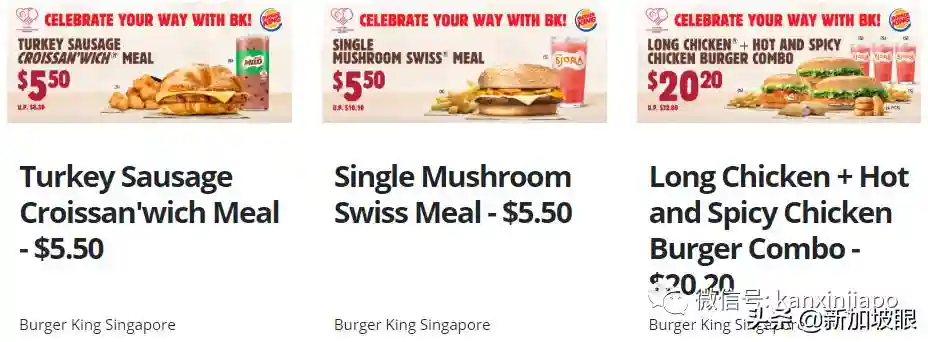 为了配合新加坡55岁的生日,汉堡王推出了$5.50的套餐,与国人同欢!