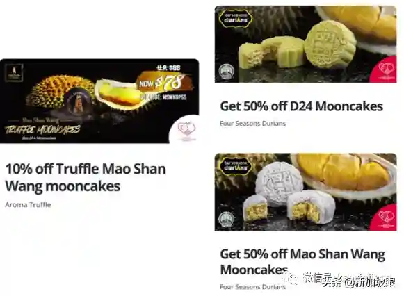 懂吃的淘客们肯定知道这一家的榴莲月饼每年是有多抢手。FourSeasonsDurian的榴莲月饼,现在把价格直接砍半!一盒四粒的D24榴莲月饼,现在只卖$34.50(原价$69)。而一盒四粒的猫山王月饼,现在只卖$64(原价$128)。