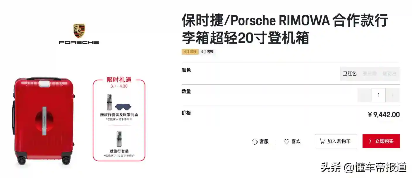 保时捷官方商城展示的RIMOWA合作款旅行箱售价9442元