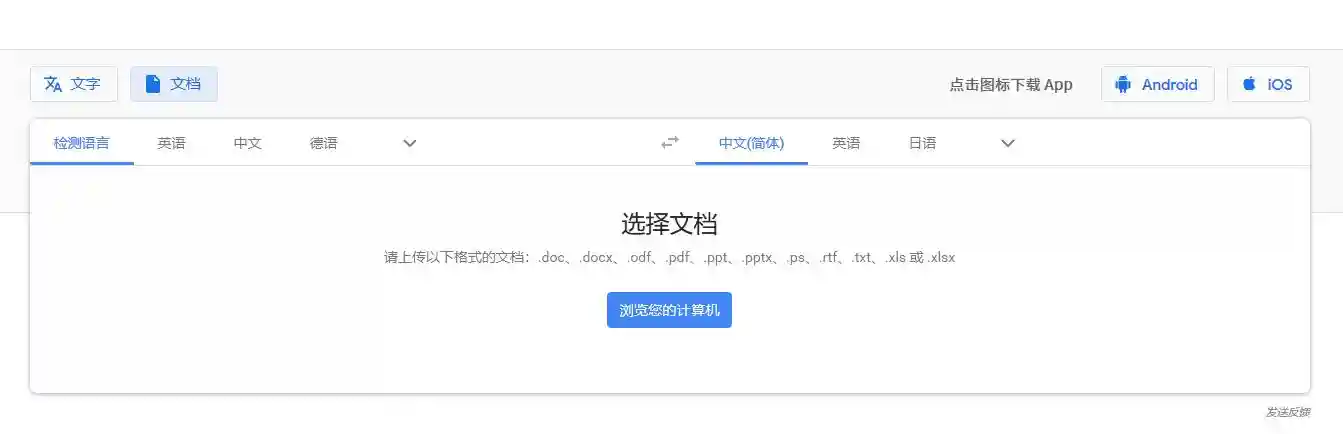 首先谷歌翻译中就内置了文档翻译工具,只需要将需要翻译的文档上传就能得到翻译件
